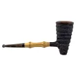 Niels made a whole series of these wild and skillfully made bamboo stacks a few years ago. This pipe is a pretty classic, shape vice, two knuckle bamboo rusticated pick axe, with smooth top and a horn stem. A very elegant and modern take, on a Danish classic.