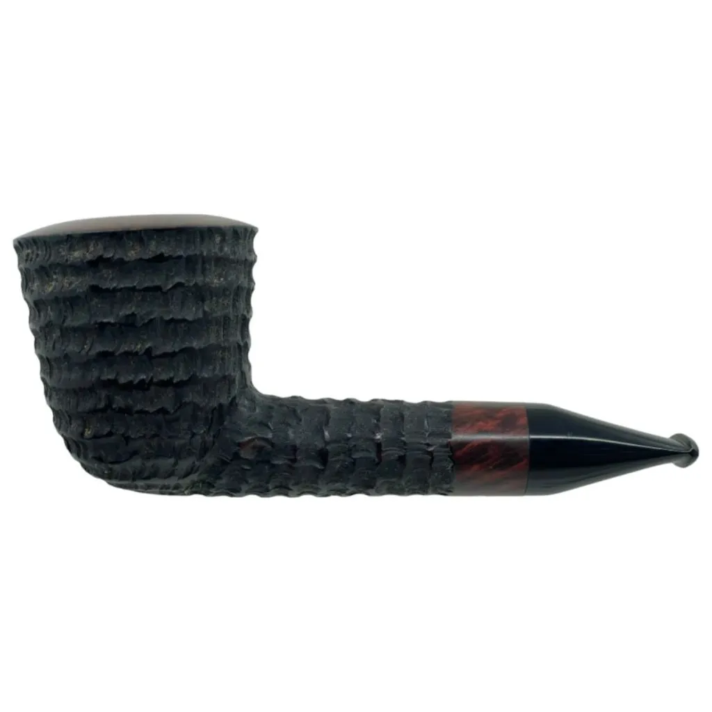 When Jon entered the Danish pipe scene some 10 years ago, everybody had a Vesterholm chubby. The pipe is recognizable a 100 yards away and every Danish pipe smoker will immediately think of master Vesterholm, when they see it. This pipe is a little to long to be a nose warmer, but it still has the compact feeling the nose warmer gives. The rusticated finish is a combination of Jon´s own skills, and his numerous hours studying with Tom Eltang. The broad smooth band on the shank and the smooth top, gives the pipe its distinctive character.